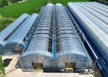 올해 완공된 ‘영농형 태양광 재배모델 실증사업’은 상주 포도 농가 재배 형태에 맞게 950㎡의 하우스에 총 72주의 포도(샤인머스캣)을 식재하였으며, 시간당 30㎾ 내외의 전기를 생산할 수 있다. 또한, 태양광 발전시설이 설치된 실험구(540㎡)와 미설치된 대조구(410㎡)로 분리하여 태양광 시설이 포도의 생육, 숙기, 당도, 생산량 등에 미치는 영향을 향후 3년간 연구할 계획이다.