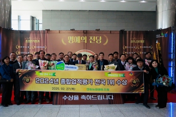 안동농협(조합장 권태형)이 ‘2024년 종합업적평가(도시형 1그룹)’에서 최근 3년 연속 전국 1위를 차지하며, 9번째 최우수상을 수상했다. 또한, 2001년 이후 종합업적평가 그룹 1위 누적 5회 이상 달성한 농축협에게만 주어지는 ‘명예의 전당’에도 헌액되는 영예를 안았다. 이는 약 1,100여개의 전국 농축협 중에서도 8개의 농축협만이 달성한 기록으로, 안동농협이 대한민국을 대표하는 최고 농협임을 다시 한번 입증한 성과이다.