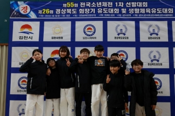영양초등학교(교장 김대신) 유도부는 지난 3월 7일(토) 김천 배드민턴경기장에서 개최된‘제26회 경상북도회장기 유도대회’에 출전하여 단체전(권○○ 외 7명) 우승을 차지하는 기염을 토했다. 이번 대회에서 영양초는 단체전 정상 등극은 물론, 개인전에서도 금메달 1개(김○○), 은메달 3개(김○○ 외 2명), 동메달 1개(홍○○)를 획득하며 전 체급에 걸쳐 압도적인 기량을 과시했다.